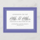 Periwinkle blue & white just married announcement card design features a beautiful chic border in blue that includes an elegant petite white border. Calligraphy and script are charcoal grey on a white background. Personalise with your name and wedding date. A modern template for date and year compliments the unique calligraphy design. The back of the card provides a template for your message and room for your handwritten signatures to add that personal touch.
