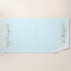 Beach towel in mint green with the text in gold: Just Married! and easily customisable the name of the newly-wed. Great gift for a wedding to use on a honeymoon vacation by a newlyweds couple.