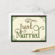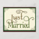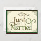 Here's a great way to let everyone know you've found your perfect mate!  This "just married" design is perfect for the newlyweds.  Just married is in a fun swirly font with chestnut brown and forest green.