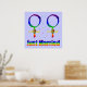 Two rainbow symbols for women and Venus announce your new "Just Married" status. Great gifts for the wedding and the reception afterward.