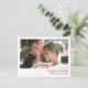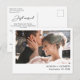 This simple and modern elopement announcement postcard is customisable with one of your favourite wedding photos, your names, and wedding date on the front.