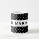 Just married mug for newly wed couples. Ideal for weddings, wedding receptions, rehearsals and bachelor or bachelorette party. Elegant black and white polka dot pattern design. Personalizable classy text and background colour. Make it a favour gift! Change background colour behind dots to match any wedding theme. Any colour is possible ie pink, red, turquoise, grey, blue, green, orange etc. Personalise it with your own text and choose any font from elegant to modern. White polka dotted pattern design.