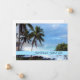 Just Married photo card shown with a photo print of a beautiful beach in Hawaii with custom sample names shown, customise this card and change the photo to yours, change the text to yours, you can even put a message on the back.