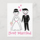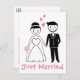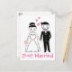 Proudly announce to your friends and family you and your sweetheart just tied the knot with this cute hand drawn pink and black cartoon bride and groom Just Married Wedding announcement postcard.