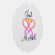 This "Just Married!" tag features a continuous line drawing of two rainbow swirly hearts (with shadow) linked together on a white background. A lovely addition to present or gift bag.