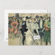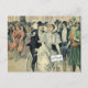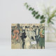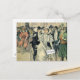 Vintage illustration of a bride and groom riding a bicycle away from a large crowd