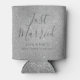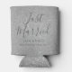 Just Married Faux Sparkle and Glitter Silver Can Cooler which are perfect for a Silver Wedding Reception.The custom Can Coolers allow the ability to update the bride and grooms name and wedding date.