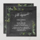 Just Married Script Greenery Bouquet on Chalkboard Invitation