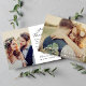 Announce your marriage with this romantic script photo wedding announcement featuring "Just Married" in flowing white calligraphy across your full-bleed photo. Names and wedding date are displayed with a sweet heart accent. The back includes a second photo and customisable letter sharing the details of your intimate ceremony. Replace photos and personalise all text to create the perfect keepsake for loved ones.
