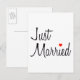 Just Married (Script With Red Heart) Announcement Postcard