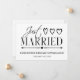 Congratulations to the happy couple who just got married. With this black and white just married card you can announce your marriage to family and friends. Includes a text box to write a note of explanation on the back of this wedding card. Simple modern elegance typography at it's best.