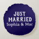 Just Married Simple Stylish Modern Minimal Name Round Cushion
