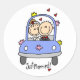 The new husband and wife ride off to their honeymoon on our Just Married stick figure bride and groom design that you can customise on the spot! Great for a wedding gift!