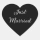 Sticker shown in the heart shape in the black colour with Just Married text in white.