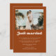 Just married Stylish retro Burnt Orange photo card
