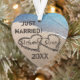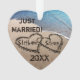 Now the popular heart shape is also in acrylic! Easily add your own custom names or any text (shown example says: "Just Married!", and just add the year desired) with names of the special couple or the bride and groom newlyweds in the hearts to personalise this beautiful popular heart shape ornament with an original photo of two hearts written in the sand along the blue ocean water to signify love and romance. Great concept for love, travel, just married, and upcoming summer save the date beach weddings. A fun, cute, personal and unique keepsake ornament to give to that special someone, girlfriend or boyfriend, bride and groom or any sweethearts couple-- just personalise the text as desired. This design is on both sides at no additional cost! See our big collection of gifts in this design in the MVDesigns store.
