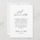 Celebrate your love story with this modern "Just Married" wedding announcement card. Featuring your favorite couple photo on one side and a timeless black-and-white design on the other, this elegant card adds a stylish touch to your elopement announcement. The headline’s extended “d” with two hanging wedding rings creates a romantic, symbolic detail that makes this design truly unique. Easily personalize the text and photo to share your joyful news with friends and family in a modern, heartfelt way.