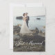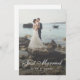 Custom Just Married Wedding Elopement Announcement Photo Card. This card has a transparent overlay /veil option over entire front photo to give a softened effect. This softens the look and is often used by photography professionals. Text is also fully customisable on both front and back with many fonts and colours to choose from. This template includes a neutral density gradient as well as the veil, both can be deleted or edited. Click the customise further option to manage. Modern, Simple and Elegant.