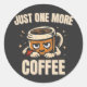Funny “Just One More Coffee” sticker for coffee lovers and caffeine addicts. Perfect for laptops, water bottles, notebooks, or gifts for friends, family, and coworkers who can’t start their day without coffee. Minimalist, clean, and high-quality design.