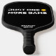 We all say it - just one more game - and then we play 5 more ;-) This funny pickleball paddle reads "JUST ONE MORE GAME" in a bold white text that's set against a black background and highlighted by a yellow pickleball (you can easily change the background colour). Add 2 lines of custom text to personalise - club name, location, player's name, phone number, etc. Or delete. Makes a perfect gift for any pickleballer - mum, dad, husband, grandpa, grandma, pickleball partner, coach - both beginners and experienced players alike are sure to get a laugh with this one of a kind paddle.