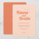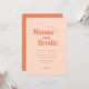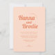 A wedding invitation with retro orange typography is a stylish and unique choice for a special occasion. The bold, bright orange letters stand out against the light peach background, creating a striking visual contrast. The invitation is further enhanced by the addition of sun and flower design details, adding a touch of whimsy and playfulness to the overall design. The sun and flowers add a cheerful and cheerful vibe to the invitation, making it perfect for a fun and memorable wedding celebration.