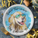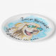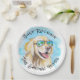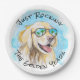 Funny retirement paper plates with a cool golden retriever on a tropical beach. Original design created from one of our hand painted watercolors.