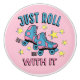 Retro style illustration with "Just Roll With It" text design and colourful stars and roller skate decoration
