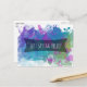 This bold, bright postcard is perfect for dropping a note to say hello when you can't visit in person. The background is covered in splashes of paints in shades of pink, purple, blue, teal and green. Over that is partially opaque horizontal black badge overthe center. The message, "Just Saying Hello" is rendered in a modern, casual font. Both the message and the make can be changed to whatever you'd like it to say. Likewise, with the overlay and background separate, you might even choose to enlarge or re-position those elements too. Enjoy!