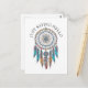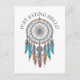 Ai art depicting a pretty blue and brown boho mystical dreamcatcher with beads and feathers. Keeping in touch postcard.
