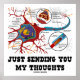 Make others do a double-take with a dose of wry neurological humour with this poster featuring a neuron / synapse along with the saying "Just Sending You My Thoughts". Educational, scientific attitude poster for neurologists, psychologists, biologists, neuroscientists -- and anyone with a thoughtful, anatomical sense of humour!