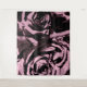 An abstract digital design of two roses in a simple pop art style, with a minimal monochromatic pink colour palette.