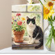 A sweet thinking about you niece, card with a sweet cat theme with an illustration of a black and white cat sitting on a flower filled window sill. Inside is a sweet poem wishing someone a beautiful day and letting them know how much they are loved.