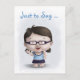 A customisable postcard featuring a cute nerdy girl. Text on the front "Just to say". Text on the back "I MIss You!"