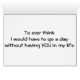 MY LIFE WOULD BE ****UNBEARABLE*** IF I HAD TO GO ONE DAY WITHOUT YOU! GREAT "LOVE CARD" FOR ANY AND ALL DAYS THAT YOU ARE "IN LOVE!"