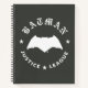 Check out this retro inspired bat logo for Justice League's Batman. His name is written in an old English style font with "Justice League" in a bold san serif font, both which encircle the bat symbol.