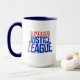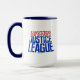 This patriotic Justice League graphic is tilted to the side and has the phrase "United We Stand" written on top of the Justice League logo.