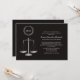 An elegant graduation announcement/invitation all in black with a silver wreath and justice scale. The wreath can enclosed initials, monogram or a date. Make an impression with this sophisticated invitation.