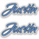 A very nice personalized sticker/sticker set in a blue styled creative look for Justin.