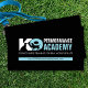Modern and professional dog training business card featuring a bold K9 graphic logo paired with customisable text, making it ideal for trainers, academies, and canine professionals who want a strong and trustworthy image. The design includes space for a tagline or motto on the front, plus full contact details on the back, with subtle paw print accents for a polished touch.