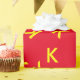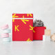 K custom letter - yellow name-initial on red wrapping paper
