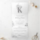'K' Monogram Beautiful Sketched Floral Wedding Tri-Fold Invitation