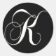 K monogram - elegant black and white classic round sticker