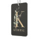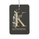 Letter K monogram floral. Letter K in golden brown texture accented with green watercolor compound leaves and berries and gold dust. Personalised with name in matching font. Set on black.