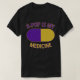 I give wanted to give this a 4 instead of a 5 because these Basic DARK T0shirts run unexpectedly SLIM or Narrow. Which is great if you do not have a potbelly, but I have a paunch. It isn't the shirt's fault that I've got a beer belly. The design and shirt itself is a quality cotton shirt. The color is more of a deep purple, but still a very pretty color. The Basic DARK T-shirts run a bit SLIMMER than the Basic Ts. The neck is a fraction narrower (or seems to be narrower) also. I'm a paunchy middle-aged woman and my neck is 12 inches (31cm) thick and the neckline fell about the same as in the photo of the man, and I had the desire to tug it a bit. So if you're a thick necked man or like loose shirts, be aware these are slimmer shirts. Once I get rid of my lockdown paunch it'll look great. The shirt washed well in cold water with no apparent bleeding. We don't have a dryer, so it hung dry. Did not shrink. Love the colors and the design. The design looks smaller on my shirt than it does on the model on-line. But still, it looks good on the shirt. The printing looks as it does on the model, just the size seems fractionally smaller. Washed garment in cold water, hung dry and design appeared unaffected.