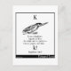 K was a kingfisher: Quickly he flew, So bright and so pretty!— Green, purple, and blue.