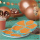 A beautiful modern illustration of hibiscus flowers done with a pen and ink technique. Inspired by the Hawaiian boardshorts and aloha shirts of the fifties and sixties. There are other home decorating items in the same design. The pattern comes in several colorways. The paper napkins coordinate with the paper plates.