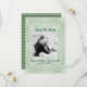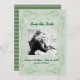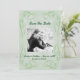 Kale Green Abstract Swirl Border Save the Date Flat Card with framed swirls at corners. The back has a striped pattern with the darker Pantone Kale colour. Rotate it for a different effect. Convert this for any occasion. Add a photo and/or change the text. The blue is close to Niagara Blue popular for this year.
