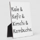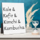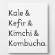 Kale, kefir, kimchi and kombucha text. Original text design.