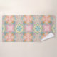This towel set has a mid-century modern design of flowers overlapping each other, looking like a kaleidoscope, in muted colours. Want different colours? Message me.