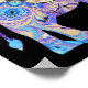 Unusual marbled, kaleidoscope elephant design on a black background makes a lovely print. Colours are blue, purple, gold, turquoise, lavender, and white.